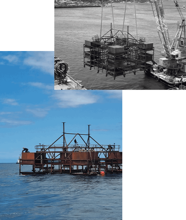 Determined to maximise biological outcomes, SeaO2 conducted a global review of OAR design. We then worked in collaboration with marine scientists, naval architects and ocean engineers to design, build and deploy a “constructed habitat”, with greater ability to promote marine biodiversity and enhance fishing opportunities than ever achieved before.